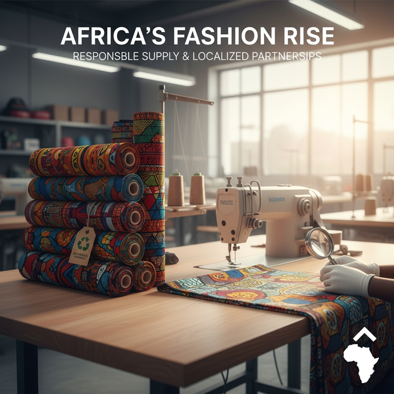الاستدامة هي تحد ومميز في نفس الوقت. تتحمل إفريقيا الكثير من تدفق الملابس المستعملة في العالم ونفايات الملابس ؛ تكتسب المبادرات المحلية لإعادة التدوير وإعطاء الأولوية للملابس المتينة والقابلة للإصلاح زخما. يتم وضع الموردين الذين يمكنهم توثيق مصدر المواد ، وإظهار الاختبار (ثبات الألوان ، والمتانة) ، وتقديم بدائل نسيج صديقة للبيئة (الألياف المعاد تدويرها ، والصباغة منخفضة التأثير) بشكل أفضل في محادثات الشراء وفي المعارض المحلية التي تجذب مشتري الجملة.